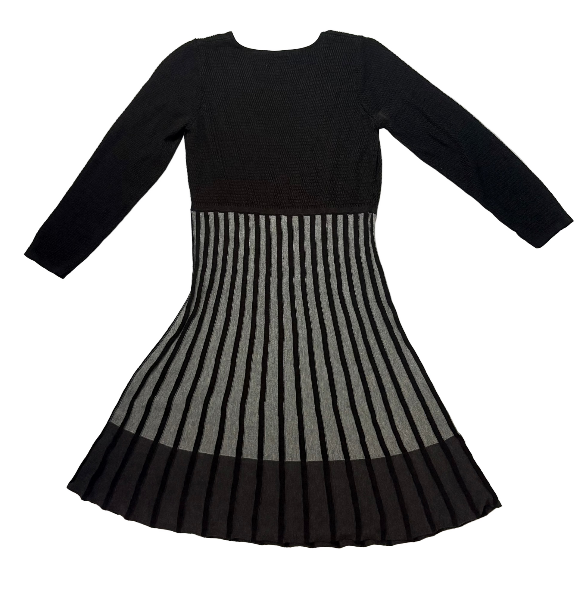 CALVIN KLEIN Black Grey Long Sleeve Pleated Knit Sweater Dress Size-S